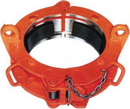 SJL and SPL single-joint, center-latch elevators are designed to replace unsafe rope slings for hoisting collar-type pipe into position. The SJL 90° elevator enables the crew to handle pipe properly, help avoid damage to pipe threads and reduce the chances of accident or injury. The SPL elevator is the same as the SJL elevator except that the SPL elevator is designed for use on tapered pipe, conforming to API specifications for extreme line casing.